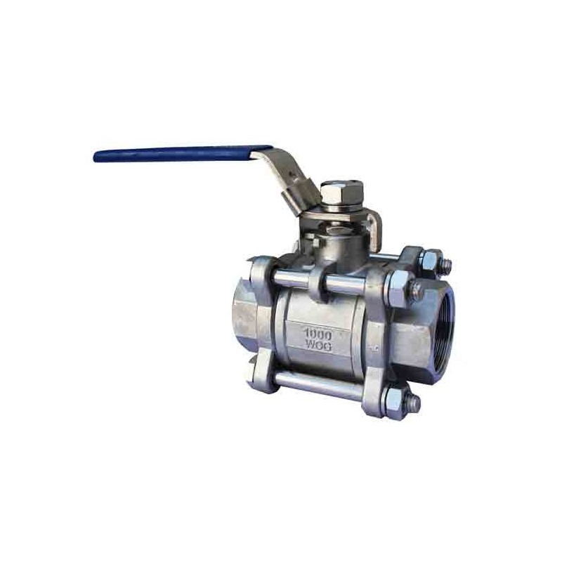 Válvula de Bola 3 cuerpos, Full Inoxidable, Sello PTFE, conexión NPT, 1000 WOG